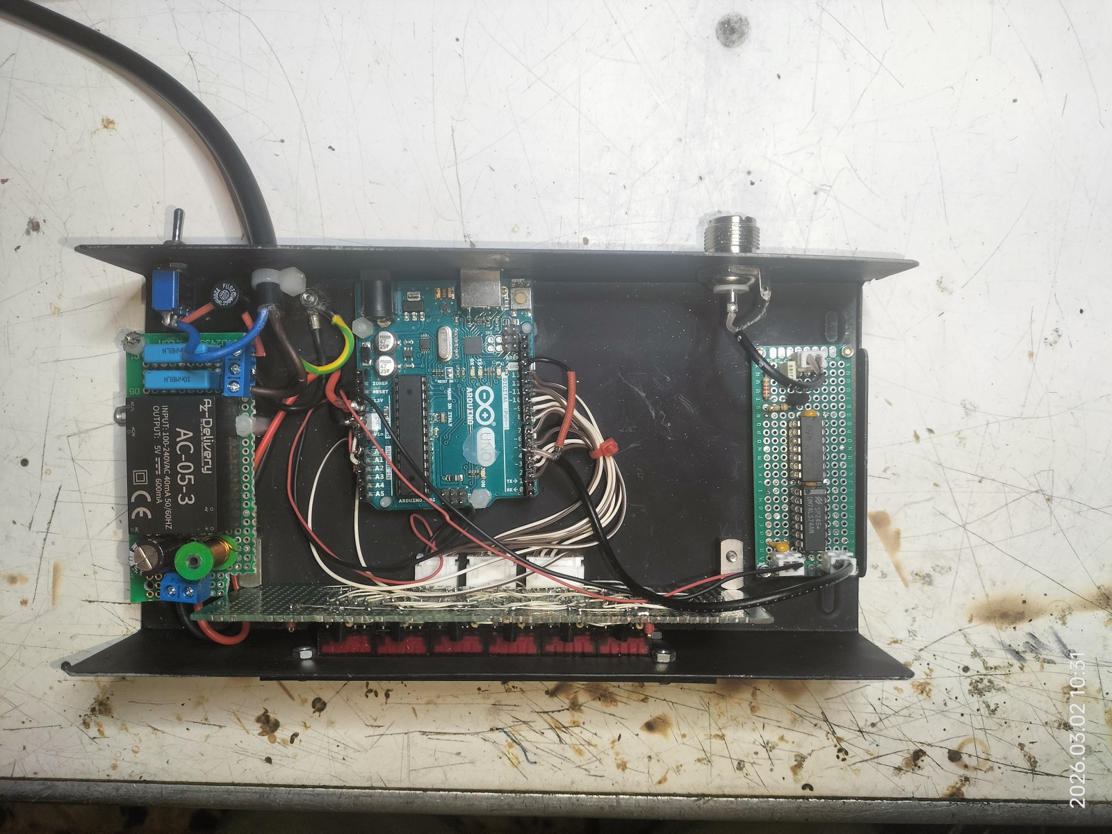 La scheda del telecomando Il contenitore che alloggia il telecomando Il telecomando funzionante montato nell'armadio |